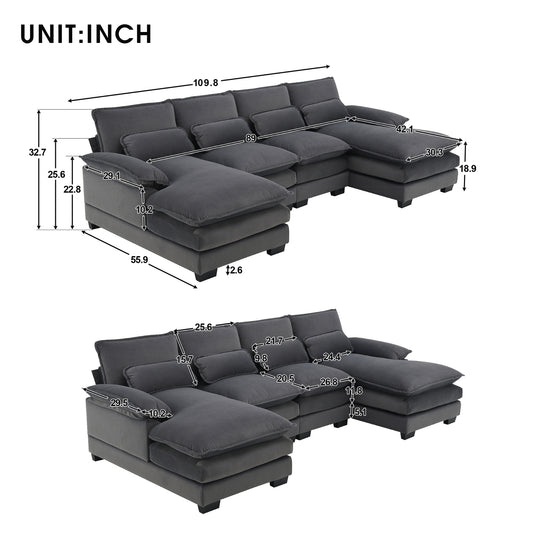 Modern Grey Sectional Sofa with Cup Holders, Pillows & High-Density Foam