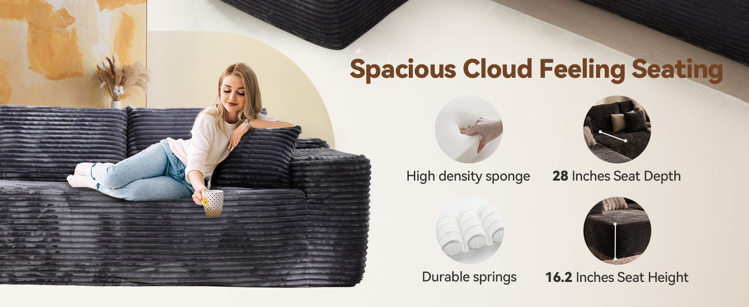 Say goodbye to complicated setup—this modular couch comes fully compressed and packaged in two separate boxes. Just unbox, let it expand for up to 72 hours, and gently pat to fluff. No tools, no hassle,comfort is just moments away.
